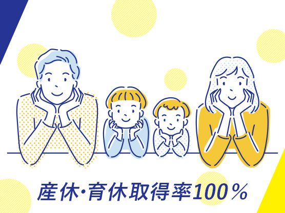 月9公休(閏年を除く2月は8公休)・年間公休107日・年次有給休暇、産前産後休暇・育児休業・介護休業取得実績あり